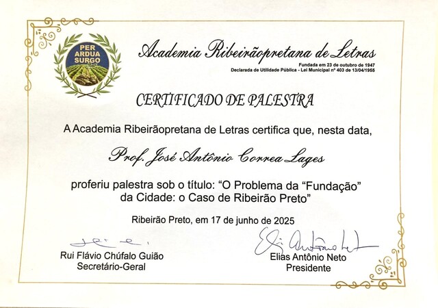 PALESTRA: O Problema da “Fundação” da cidade: O caso de Ribeirão Preto”- Pelo Prof.José A. Correa Lages – 17/06/2025